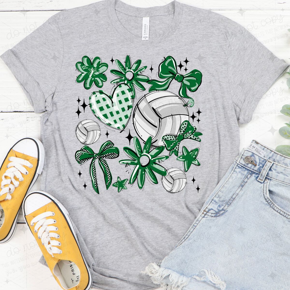COQUETTE VOLLEYBALL DOODLE - KELLY GREEN - DTF TRANSFER