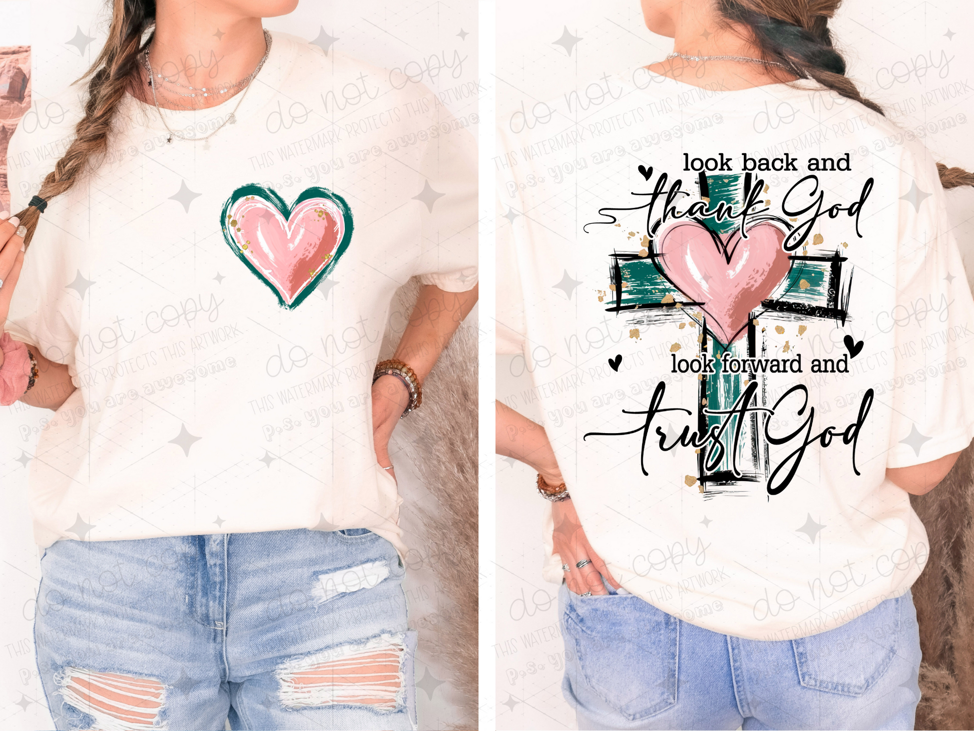 LOOK BACK AND THANK GOD LOOK FORWARD AND TRUST GOD - FRONT+BACK - DTF TRANSFER