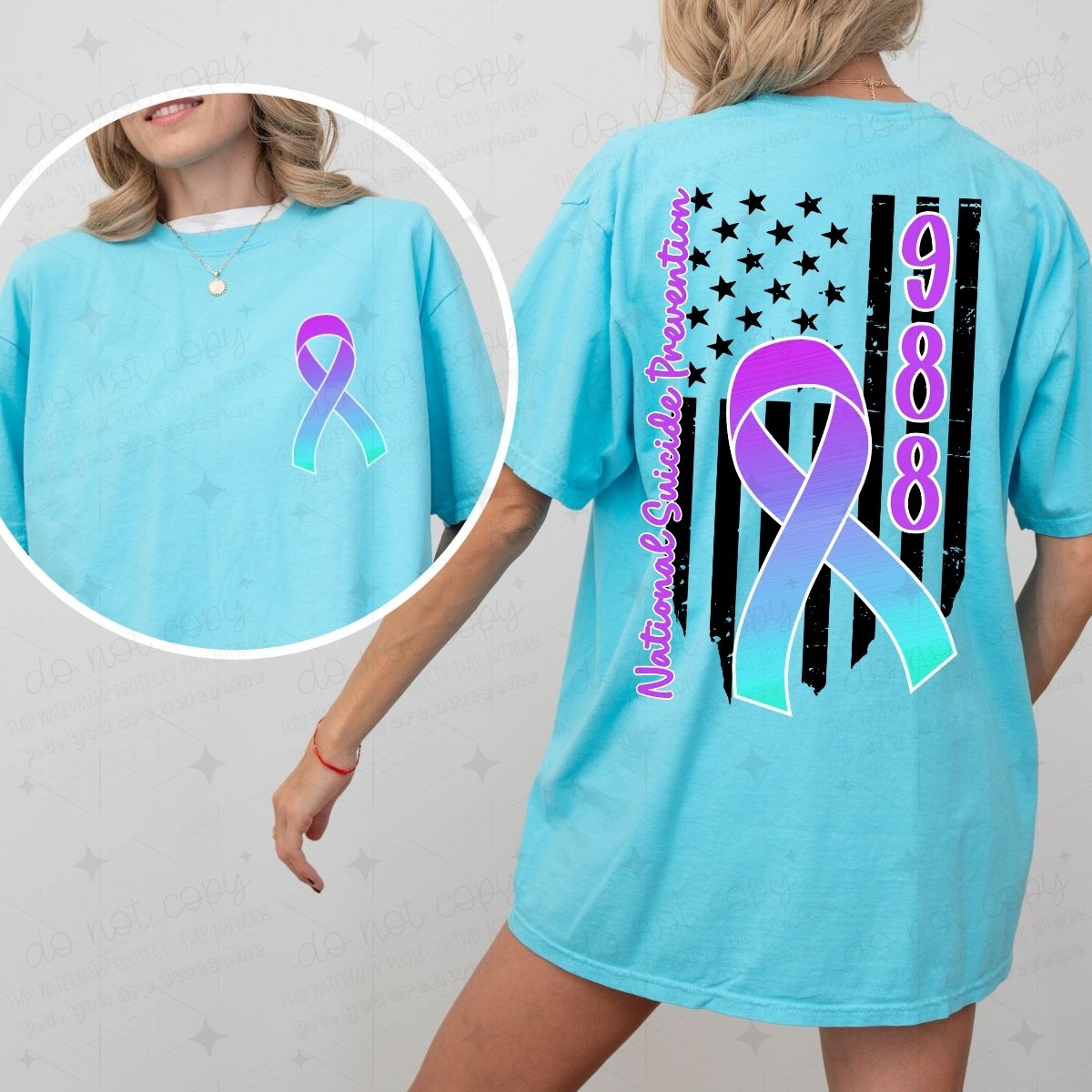 NATIONAL SUICIDE PREVENTION 988 - BLACK FLAG BACKGROUND - FRONT+BACK - DTF TRANSFER