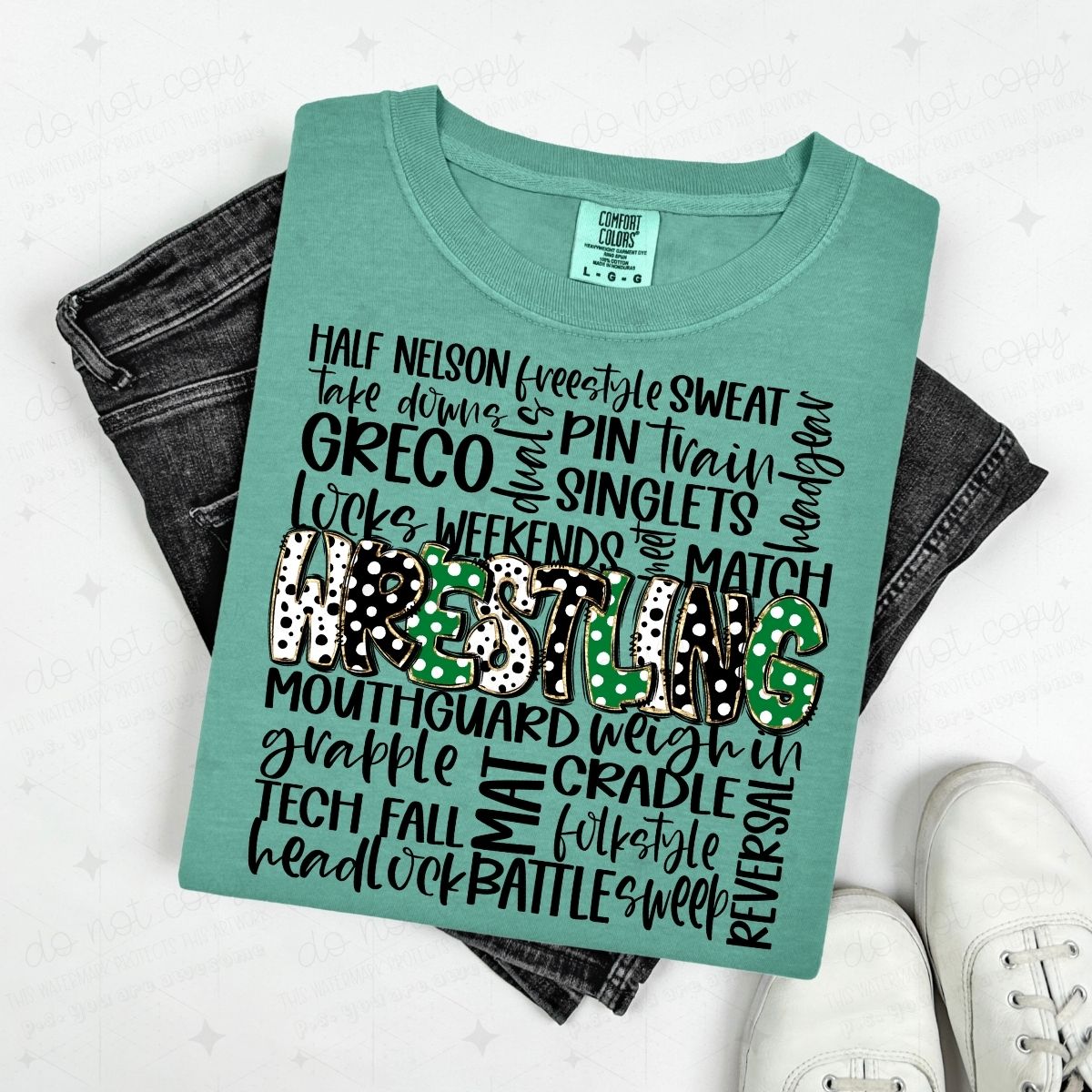 WRESTLING DOODLE - GREEN/BLACK - DTF TRANSFER
