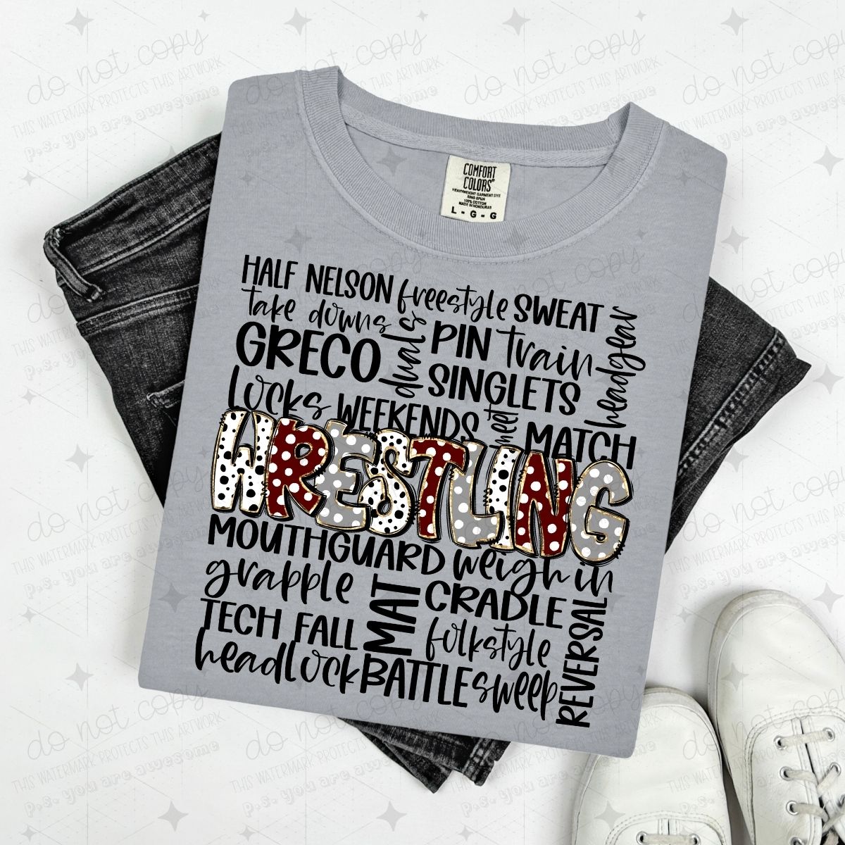 WRESTLING DOODLE - MAROON/GREY - DTF TRANSFER